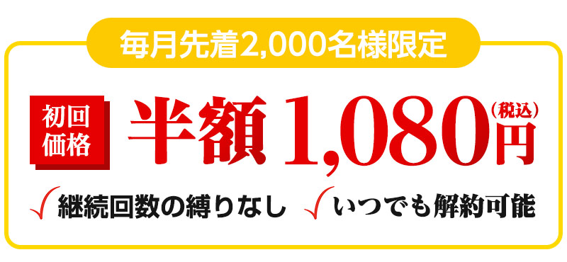 通常価格は2,160円ですが、今だけ毎月先着2,000名様限定で半額の1,080円で購入できます!