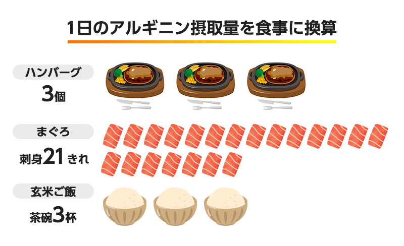 これだけの配合量だからこそ タフな毎日に必要なアルギニンを存分に摂ることができ、効果実感度も高いのです。